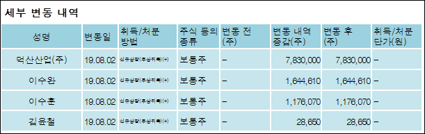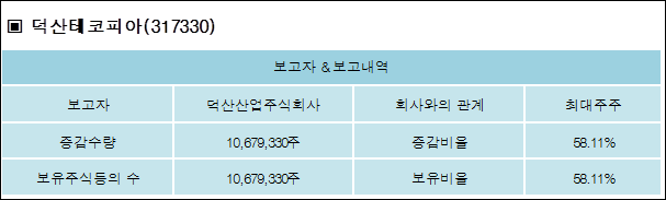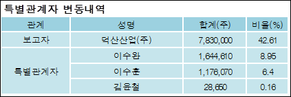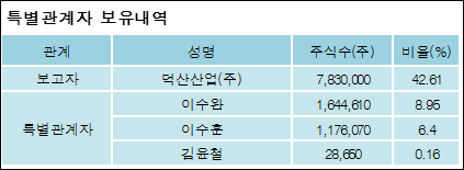 다음은 덕산테코피아의 지분 변동 내역과 보유 내역이다.