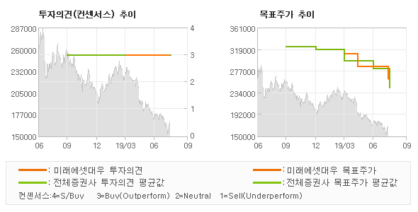| 의견제시일자 | 증권사 | 투자의견 | 목표가 | | 20190809 | 미래에셋대우 | BUY(유지) | 260,000 | | 20190809 | 삼성증권 | BUY | 225,000 | | 20190809 | NH투자증권 | BUY(유지) | 220,000 | | 20190809 | 현대차증권 | BUY | 220,000 |