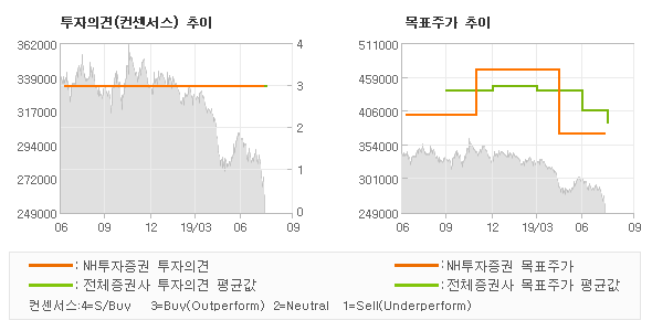 | 의견제시일자 | 투자의견 | 목표가격 | | 20190809 | BUY(유지) | 370,000 | | 20190705 | BUY(유지) | 370,000 | | 20190514 | BUY(유지) | 370,000 | | 20190215 | BUY(유지) | 470,000 | | 20190108 | BUY(유지) | 470,000 |