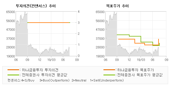 | 의견제시일자 | 증권사 | 투자의견 | 목표가 | | 20190808 | 하나금융투자 | BUY(상향) | 36,000 | | 20190703 | 신한금융투자 | BUY(유지) | 28,000 | | 20190619 | 유진투자증권 | BUY(유지) | 29,000 |