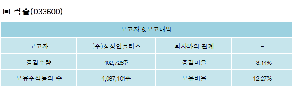 다음은 럭슬의 지분 변동 내역과 보유 내역이다.