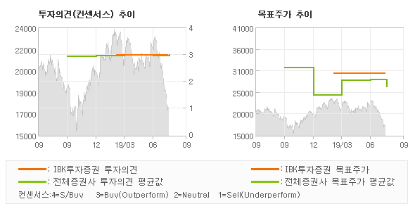 오늘 IBK투자증권에서 발표된 'BUY(유지)'의견 및 목표주가 30,000원은 전체의견에 수렴하면서 시장의 평균적인 기대감이 비교적 객관적으로 표현된 것으로 풀이되며 목표가평균 대비 15.2% 초과하고 있는 것으로 집계되었다. 참고로 최근 증권사 매매의견 중에서 제일 보수적인 의견을 제시한 삼성증권에서 투자의견 'BUY'에 목표주가 22,000원을 제시한 바 있다.