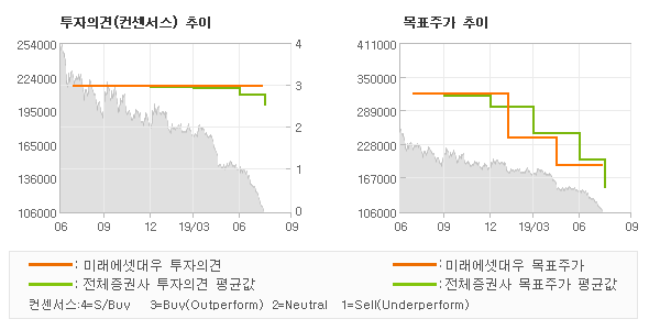 | 의견제시일자 | 투자의견 | 목표가격 | | 20190812 | BUY | 190,000 | | 20190529 | BUY(상향) | 190,000 | | 20190515 | BUY(유지) | 190,000 | | 20190215 | 매수 | 240,000 | | 20190207 | 매수 | 240,000 |