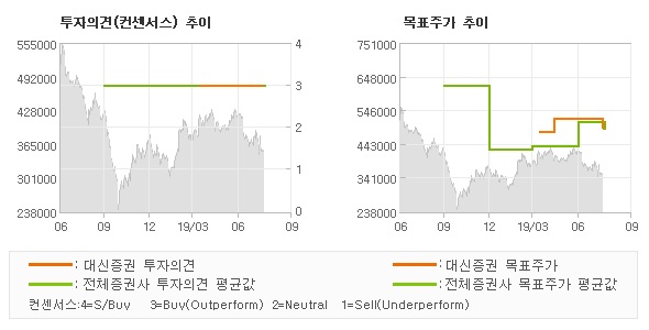 | 의견제시일자 | 증권사 | 투자의견 | 목표가 | | 20190814 | 대신증권 | BUY(유지) | 490,000 |
