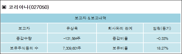 다음은 코리아나의 지분 변동 내역과 보유 내역이다.