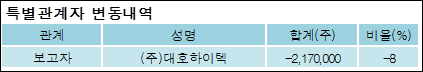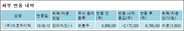 다음은 대호에이엘의 지분 변동 내역과 보유 내역이다.