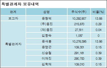 다음은 웅진의 지분 변동 내역과 보유 내역이다.
