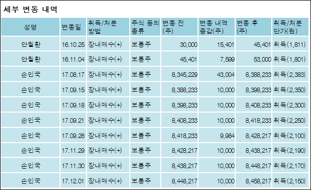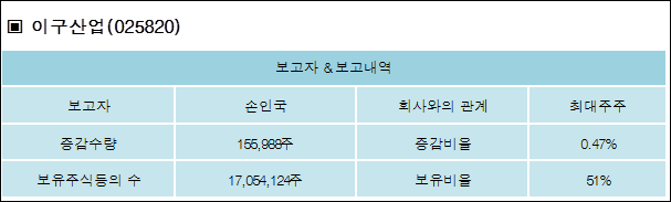 다음은 이구산업의 지분 변동 내역과 보유 내역이다.