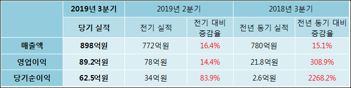 11월 11일 일양약품(007570)의 2019년 3분기 연결 확정 실적이 발표됐다. 매출액, 영업이익, 당기순이익 모두 작년 같은 기간 대비 증가했다. 매출액은 15.11%, 늘어난 898억원으로 발표됐다. 영업이익과 당기순이익은 각각 308.85%, 2268.18% 증가하여 89.2억원, 62.5억원으로 기록 되었다.