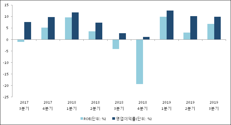 이번분기 기준으로 추정되는 일양약품의 자기자본이익률(ROE)은 6.8%로 나타났다. 전년 동기인 2018년 3분기 ROE는 -4.1%로 이번 분기에 10.9%p 상승했다. 한편 동종목의영업이익률은 9.9%이다. 지난해 동기 영업이익률은 2.8%로 이번 3분기가 7.1%p 상승했다.