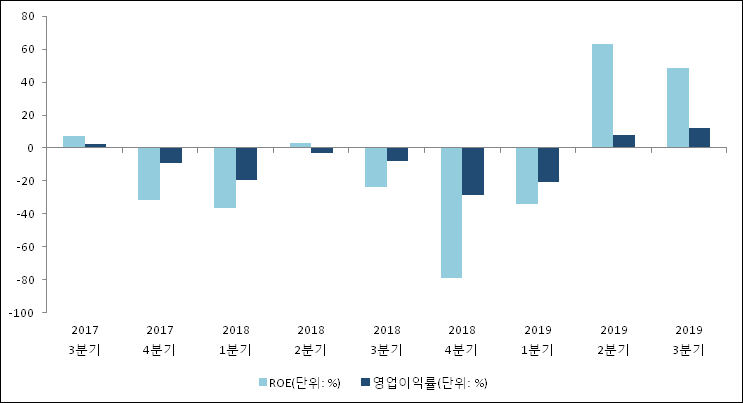 이번분기 기준으로 추정되는 동운아나텍의 자기자본이익률(ROE)은 48.3%로 나타났다. 전년 동기인 2018년 3분기 ROE는 -23.4%로 이번 분기에 71.7%p 상승했다. 한편 동종목의영업이익률은 12.4%이다. 최근 3분기 이상 꾸준히 상승하는 추세이다. 지난해 동기 영업이익률은 -8%로 이번 3분기가 20.4%p 상승했다.