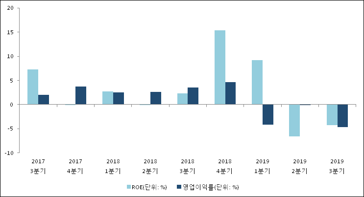 이번분기 기준으로 추정되는 와이지엔터테인먼트의 자기자본이익률(ROE)은 7.3%로 나타났다. 전년 동기인 2018년 3분기 ROE는 15.4%로 이번 분기에 8.1%p 하락했다. 한편 동종목의영업이익률은 2%이다. 지난해 동기 영업이익률은 4.6%로 이번 3분기에 2.6%p 하락했다.