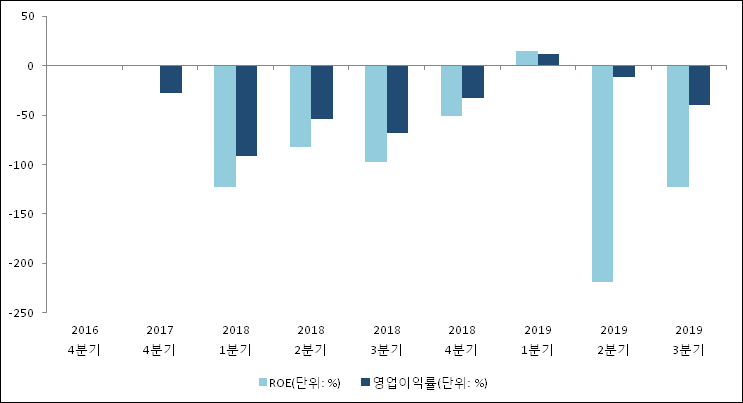 이번분기 기준으로 추정되는 지엘팜텍의 자기자본이익률(ROE)은 -123%로 나타났다. 이는 최근 일년과 비교했을 때 급락한 수치이다. 전년 동기인 2018년 3분기 ROE는 -97.2%로 이번 분기에 25.8%p 하락했다. 한편 동종목의영업이익률은 -40%이다.최근 일년을 살펴보았을 때 영업이익률이 급락했다. 지난해 동기 영업이익률은 -68.2%로 이번 3분기가 28.2%p 상승했다.