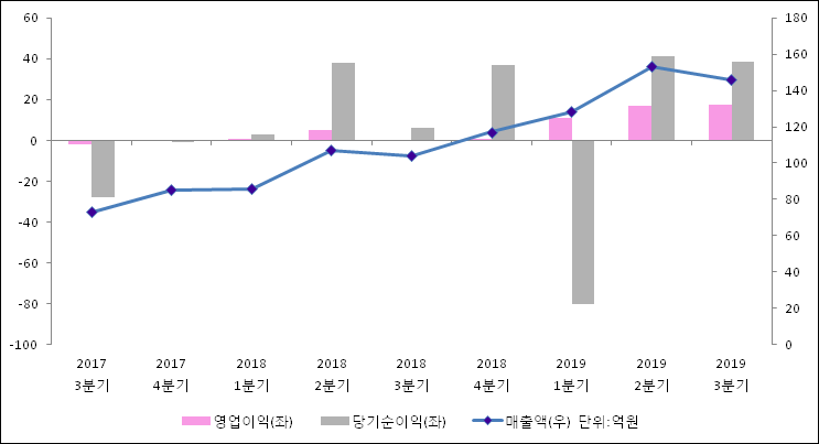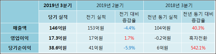 11월 14일 글로벌텍스프리(204620)의 2019년 3분기 연결 확정 실적이 발표됐다. 지난해 같은 기간 대비해서 매출액은 40.32% 늘어나서 146억원을 기록했다. 영업이익은 17.3억원으로 -0.2억원에서 흑자전환되었다. 당기순이익은 542.1% 증가하여 38.6억원을 달성했다.