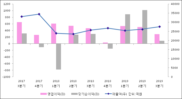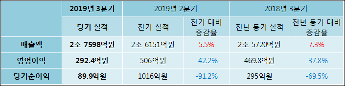 11월 14일 LG상사(001120)의 2019년 3분기 연결 확정 실적이 발표됐다. 작년 동기 대비 매출액은 7.3% 증가한 2조 7598억원으로 집계됐다. 그러나 영업이익과 당기순이익은 37.77%, 69.54%씩 축소되어 292.4억원, 89.9억원으로 발표됐다.