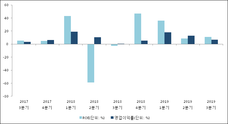 이번분기 기준으로 추정되는 이지웰페어의 자기자본이익률(ROE)은 11.2%로 나타났다. 전년 동기인 2018년 3분기 ROE는 -2.9%로 이번 분기에 14.1%p 상승했다. 한편 동종목의영업이익률은 6.7%이다. 지난해 동기 영업이익률은 0.4%로 이번 3분기가 6.3%p 상승했다.