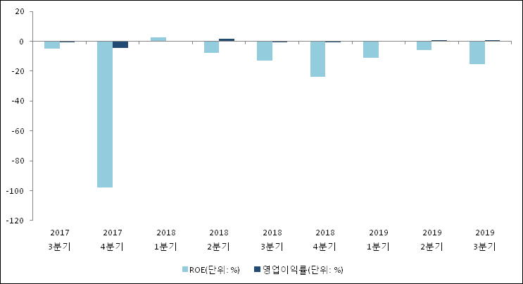 이번분기 기준으로 추정되는 모베이스전자의 자기자본이익률(ROE)은 -15.1%로 나타났다. 이는 최근 일년과 비교했을 때 급락한 수치이다. 전년 동기인 2018년 3분기 ROE는 -13.2%로 이번 분기에 1.9%p 하락했다. 한편 동종목의영업이익률은 0.6%이다. 최근 3분기 이상 꾸준히 상승하다가 이번 분기에 하락했다. 지난해 동기 영업이익률은 -0.6%로 이번 3분기가 1.2%p 상승했다.