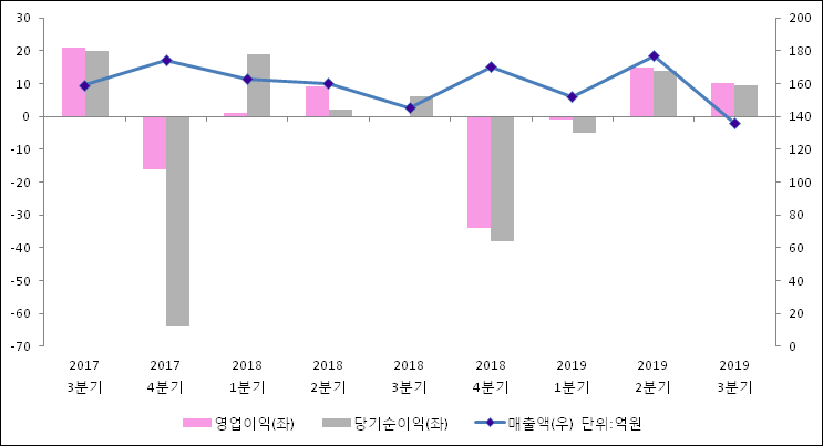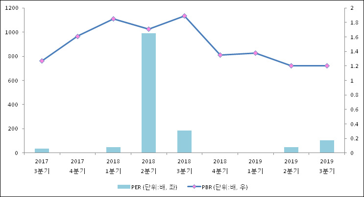 주가가 1주당 수익의 몇배가 되는지 나타내는 주가수익비율(PER)은 103.8배로 나타났다. 전년 동기 PER은 183.96배로 이번 분기에 하락했다.주가가 1주당 순자산의 몇배인지 알려주는 주가순자산비율인 PBR은 1.2배이다. 지난해 동기 PBR은 1.89배로 이번 3분기 PBR이 하락했다.