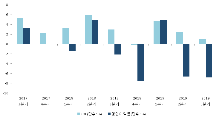 이번분기 기준으로 추정되는 삼성공조의 자기자본이익률(ROE)은 1.1%로 나타났다. 전년 동기인 2018년 3분기 ROE는 3%로 이번 분기에 1.9%p 하락했다. 한편 동종목의영업이익률은 -6.8%이다.최근 일년을 살펴보았을 때 영업이익률이 급락했다. 지난해 동기 영업이익률은 -2.1%로 이번 3분기에 4.7%p 하락했다.