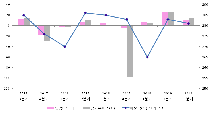 11월 14일 유니온머티리얼(047400)의 2019년 3분기 연결 확정 실적이 발표됐다. 매출액은 281억원으로 지난해 같은 기간 대비해서 1.51% 감소하였지만 영업이익은 122.13% 증가해서10.8억원으로 집계되었다. 당기순이익 역시 개선되어 14.1억원으로 상승하였다.