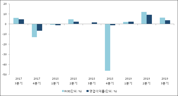 이번분기 기준으로 추정되는 유니온머티리얼의 자기자본이익률(ROE)은 6.4%로 나타났다. 전년 동기인 2018년 3분기 ROE는 0.1%로 이번 분기에 6.3%p 상승했다. 한편 동종목의영업이익률은 3.8%이다. 지난해 동기 영업이익률은 1.7%로 이번 3분기가 2.1%p 상승했다.