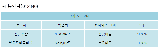 다음은 뉴인텍의 지분 변동 내역과 보유 내역이다.