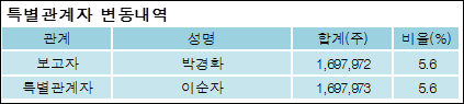 최대주주와 특수관계자의 지분 변동은 주가에 영향을 주는 요인이다. 특히 보유비율을 지속적으로 늘리거나 줄일 경우, 해당종목 투자시 유의할 필요가 있다.