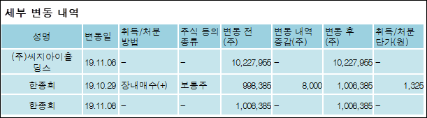 다음은 상지카일룸의 지분 변동 내역과 보유 내역이다.
