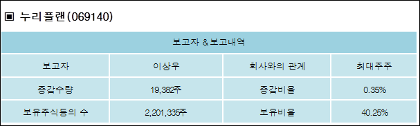 [ET투자뉴스][누리플랜 지분 변동] 이상우 외 6명 0.35%p 증가, 40.25% 보유