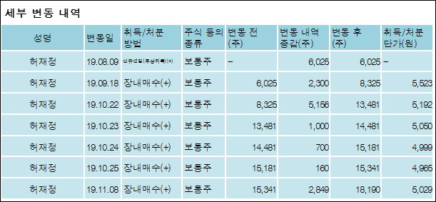 다음은 누리플랜의 지분 변동 내역과 보유 내역이다.