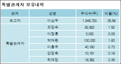 최대주주와 특수관계자의 지분 변동은 주가에 영향을 주는 요인이다. 특히 보유비율을 지속적으로 늘리거나 줄일 경우, 해당종목 투자시 유의할 필요가 있다.
