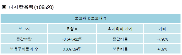 다음은 디지탈옵틱의 지분 변동 내역과 보유 내역이다.