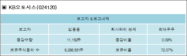 다음은 KB오토시스의 지분 변동 내역과 보유 내역이다.