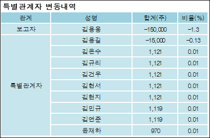 최대주주와 특수관계자의 지분 변동은 주가에 영향을 주는 요인이다. 특히 보유비율을 지속적으로 늘리거나 줄일 경우, 해당종목 투자시 유의할 필요가 있다.