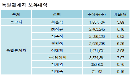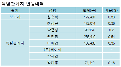 최대주주와 특수관계자의 지분 변동은 주가에 영향을 주는 요인이다. 특히 보유비율을 지속적으로 늘리거나 줄일 경우, 해당종목 투자시 유의할 필요가 있다.