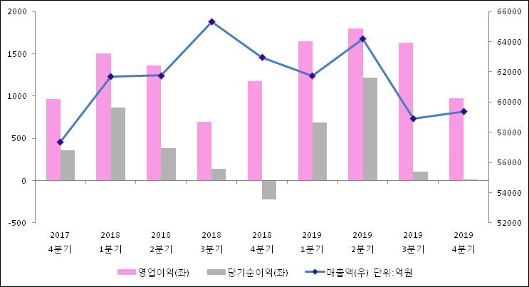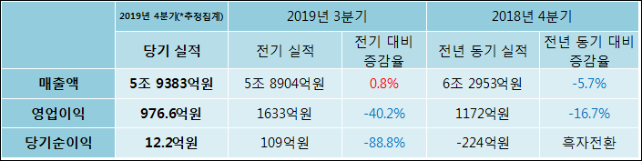 1월 31일 포스코인터내셔널(047050)의 2019년 4분기 연결 잠정 실적이 발표됐다. 매출액은 전년 같은 기간 대비해서 5.7% 감소하여 5조 9383억원라고 발표됐다. 영업이익은 16.7% 하락하여 976.6억원을 기록했다. 당기순이익은 -224억원에서12.2억원으로 흑자전환되었다.