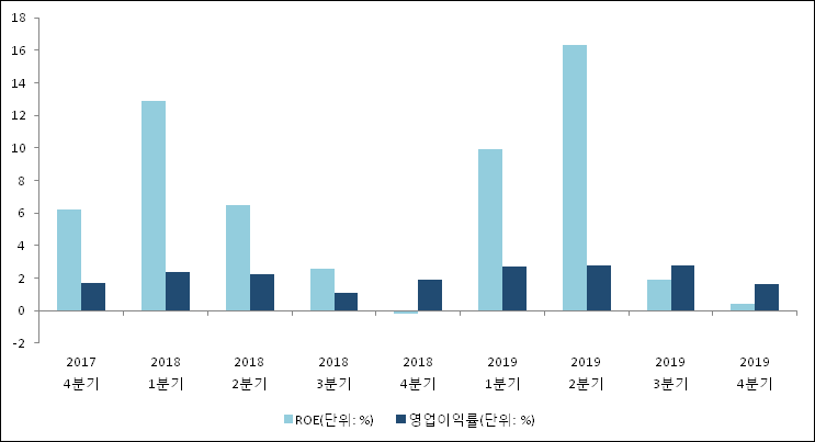이번분기 기준으로 추정되는 포스코인터내셔널의 자기자본이익률(ROE)은 0.4%로 나타났다. 전년 동기인 2018년 4분기 ROE는 -0.2%로 이번 분기에 0.6%p 상승했다. 한편 동종목의영업이익률은 1.6%이다. 지난해 동기 영업이익률은 1.9%로 이번 4분기에 0.3%p 하락했다.