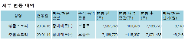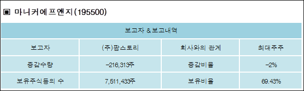 다음은 마니커에프앤지의 지분 변동 내역과 보유 내역이다.