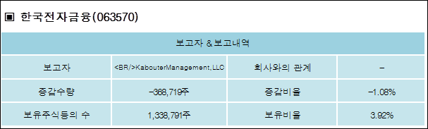 다음은 한국전자금융의 지분 변동 내역과 보유 내역이다.