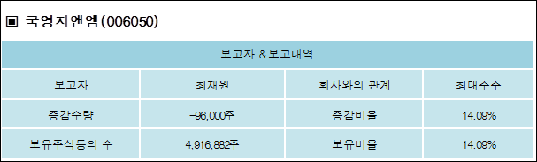 다음은 국영지앤엠의 지분 변동 내역과 보유 내역이다.