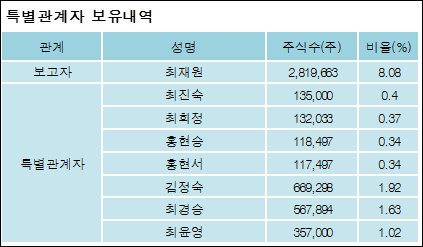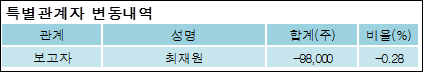 최대주주와 특수관계자의 지분 변동은 주가에 영향을 주는 요인이다. 특히 보유비율을 지속적으로 늘리거나 줄일 경우, 해당종목 투자시 유의할 필요가 있다.